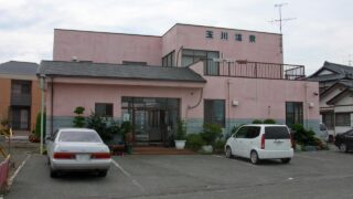 山梨県甲斐市の日帰り温泉の「玉川温泉」です。田んぼの中のピンク色の建物が目印です。浴槽はふたつで、奥が源泉かけ流し、手前が半循環でした。お湯は薄い黄色透明で、少し鉄味がしました。オーバーフローのものすごさで、床が川のようでした。