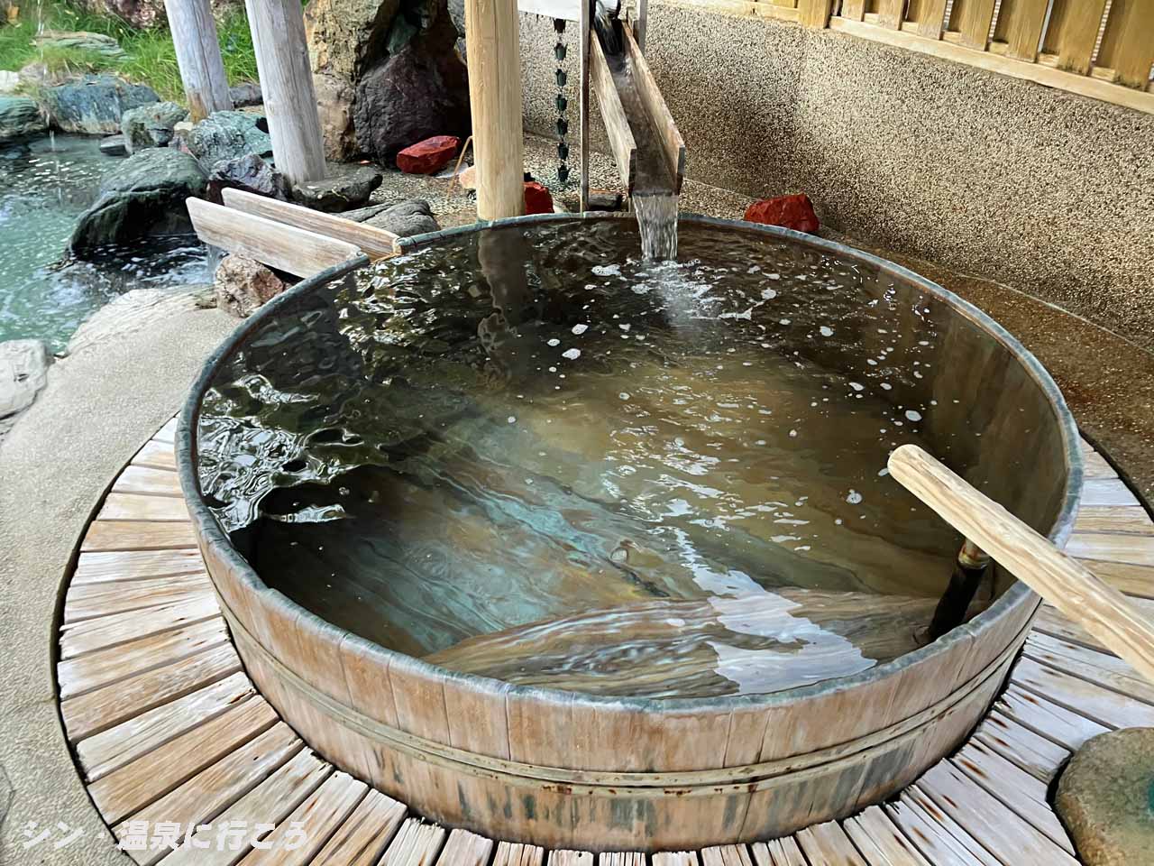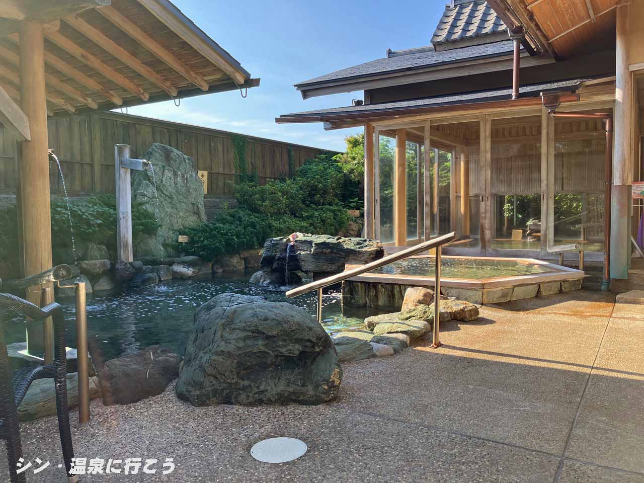 露天風呂には大浴槽、樽風呂、屋内の八角形の浴槽他がありました