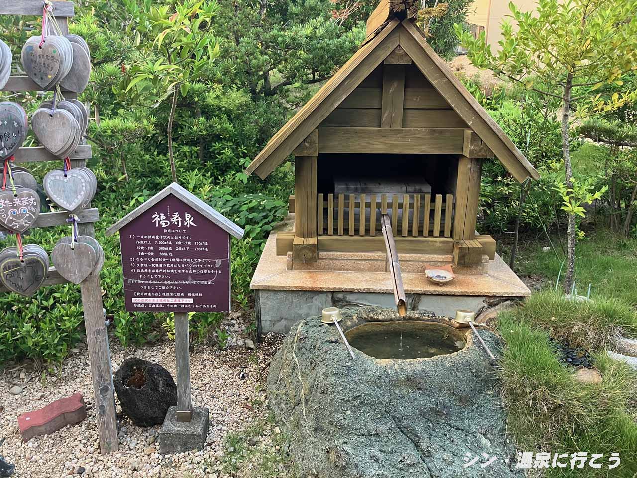 露天風呂の浴舎の入口前と展望大浴場の入口前で飲泉もできます