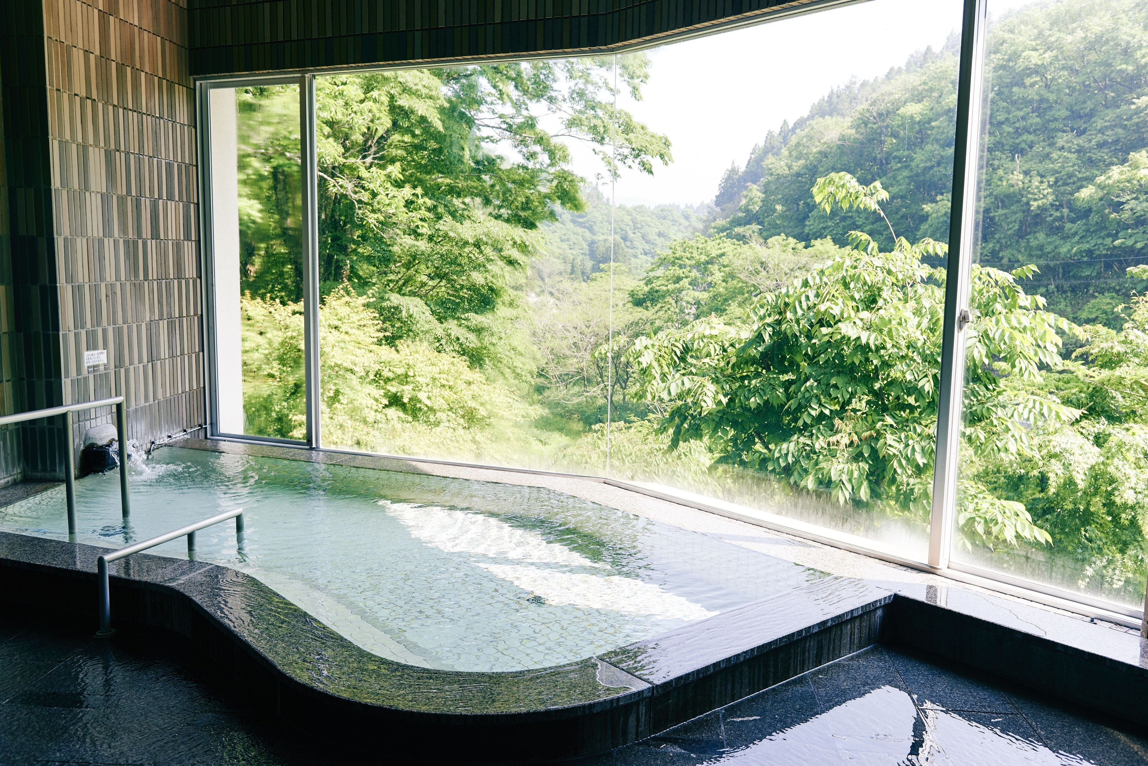 広い窓から見える山の緑がきれいでした